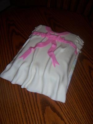 For the clothesline I used the kitchen-aid spaghetti maker. The clothes, pole (holding the clothesline), booties and blanket are also fondant.