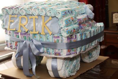 This cake was made with Huggies brand diapers rolled up in to tubes.