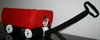 the wagon handle, wrap a used wrapping paper roll in black wrapping